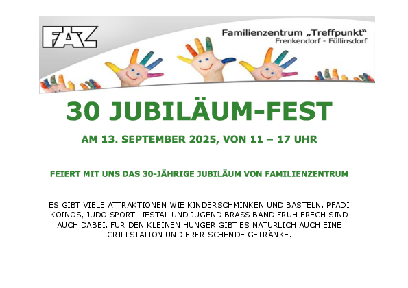 Wir feiern 30 Jahre Familienzentrum Frenkendorf/Füllinsdorf.